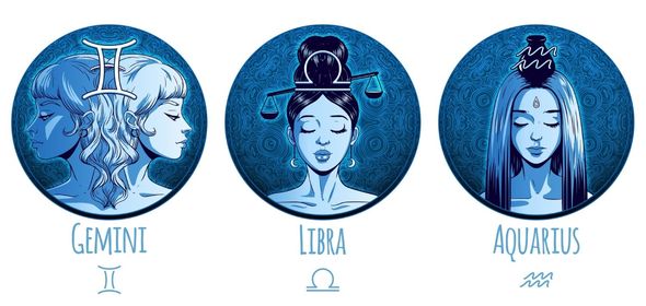 Levegő jegyek: Ikrek, Mérleg, Vízöntő